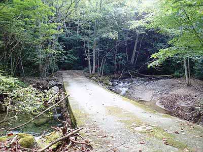 闇隅沢 34脱渓地点よりヤブ漕ぎわずか15分で林道に到着。前回1時間もかかったヤブ漕ぎが嘘のよう。このショートカットルートのお陰で、行動時間をちょうど1時間も短縮することに成功しました。2025年9月23日撮影 |