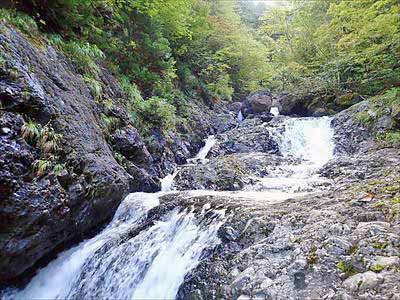 闇隅沢 17上の写真の上段の滝を間近で撮影。2025年9月23日撮影 |