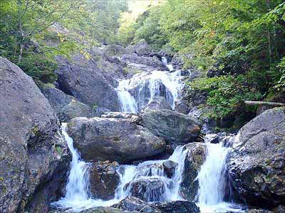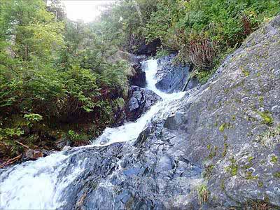 闇隅沢 27その標高1000mの二俣の右俣(本流)に掛かる「三ツ折れの滝10m」です。2025年9月23日撮影 |