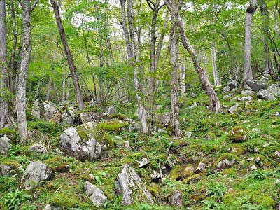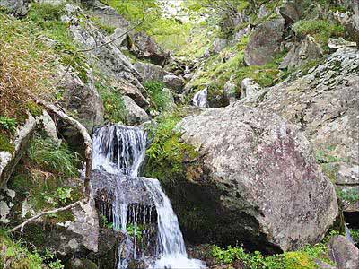 五葉山 大沢 47下山は、大沢ルート。緑がとても美しく感動モンでした。わずか2時間で登山口に到着し、午後の仕事にも余裕で間に合いました。たまには山小屋泊まり、いいもんです。2025年9月28日撮影 |