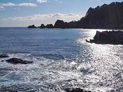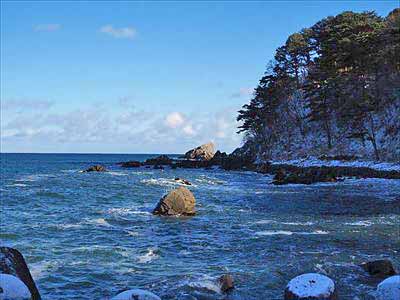三陸海岸 自然歩道 32ネダリ浜の入口付近より海を望みます。2025年12月27日 |
