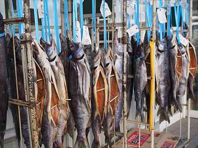 三陸海岸 自然歩道 24その商店街のスーパーの軒先に陳列していた鮭です。年の瀬を感じる光景です。2025年12月27日 |