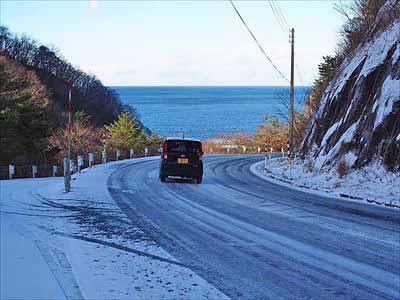 三陸海岸 自然歩道 1自宅を7時30分に出発。目的地の「道の駅・青の国ふだい」までは約130km。この日の最低気温は氷点下7度で、前日の積雪もあり路面はツルツル。まるでスケートリンクです。2025年12月27日 |