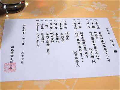 三陸海岸 自然歩道 4018時、いよいよ待ちに待ったディナーです。全部で11品。まるで料亭のようなメニューです。2025年12月27日 |