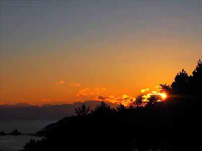 三陸海岸 自然歩道 44露天風呂から見た日の出の瞬間です。2025年12月28日 |