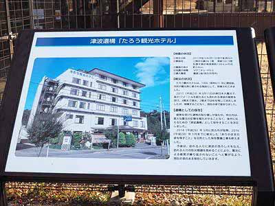 三陸海岸 自然歩道 49最初に立ち寄ったのは、震災遺構「たろう観光ホテル」。2011年の東日本大震災で被災した6階建ての建物が、そのままの姿で保存されています。津波の爪痕を目の前にすると言葉を失います。2025年12月28日 |