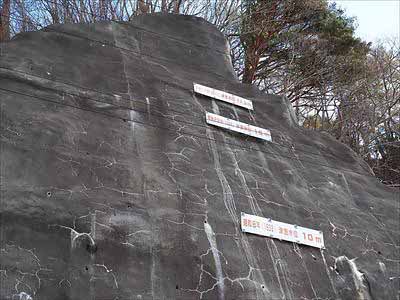 三陸海岸 自然歩道 52三王岩に向かう途上にあった「津波到達点」。過去三度の大きな津波がありました。①明治29年(1896)津波水位15m ②昭和8年(1933)津波水位10m ③平成23年(2011)津波水位17.3m。2025年12月28日 |