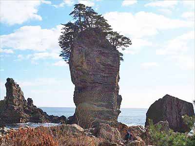 三陸海岸 自然歩道 54三王岩が見えて参りました。三陸復興国立公園を代表する景勝地の一つで、東日本大震災の津波を耐え抜いた「不屈の岩」としても知られています。2025年12月28日 |