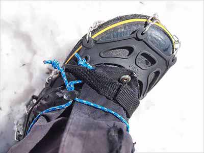 八幡平 源太ヶ岳 14標高1,200m付近からの急斜面のトラバースでは、念のためにスノースパイクを履きました。朝の締まった雪との相性は抜群で、軽快に歩を進められます。2026年4月25日撮影 |