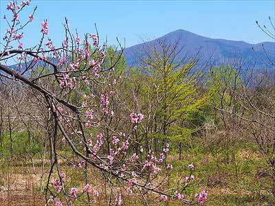八幡平 源太ヶ岳 27帰路、ユートランド姫神に寄って温泉に入り汗を流しました。そこより桜と姫神山を望みます。2026年4月25日撮影 |
