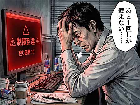 ところが、Gemini 3の登場をきっかけに、私のAI利用は一気にGoogle中心へと傾きました。文章生成だけでなく、画像生成やリサーチ用途まで幅が広く、気づけば仕事もプライベートもGoogle系AIだらけ。Gemini、NotebookLM、Google AI Studioはもはや日常ツールです。それだけに、制限に引っかかるたび「今日はここまでか……」と作業を中断する場面が増えていきました。ホームページ制作やコンテンツ作成の途中で止められるのは、正直かなりのストレスです。
