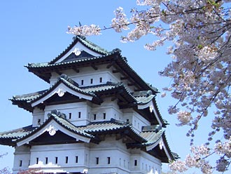 弘前城の桜 9弘前城は、ソメイヨシノなど約2600本の 桜が園内を彩るみちのくの名城です。桜の名所となった背景には明治に入って 荒れた城を見かねた旧藩士がソメイヨシノ 1000本を植栽したエピソードがあります。 2005年5月4日撮影 |