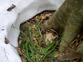 早池峰 七折の滝 6木々の根元にチラホラと草の緑が見えました。 「春だなぁ~♪」って感じですよねぇ~! 緑を見ると、心が和みます♪2005年4月10日撮影 |