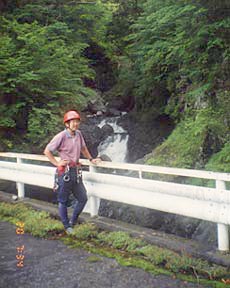我々が入渓したときは、残雪が多く、また 不安定で特に上流部のゴルジュの雪渓処理 に苦労しました。 結構、ハラハラもんでした! この写真は中流部のゴルジュ入口にて…。