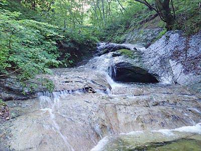 叶道沢 (地神沢~クロノ沢) 7滑津大滝が見えてきました~!猛暑日でしたので、子供たちが水浴びして遊んでいました。2021年7月17日撮影 |