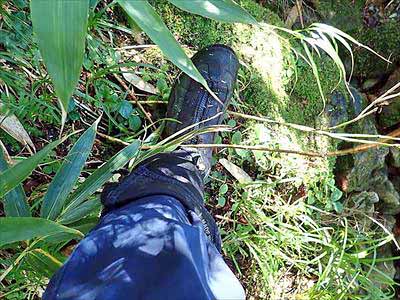 大作沢右俣 8ラバーの沢靴、今回で3回目となります。ラバーの場合、突然滑るので気を付けなくっちゃね。滑る岩と滑らない岩の見極めが重要となります。2024年9月16日撮影 |