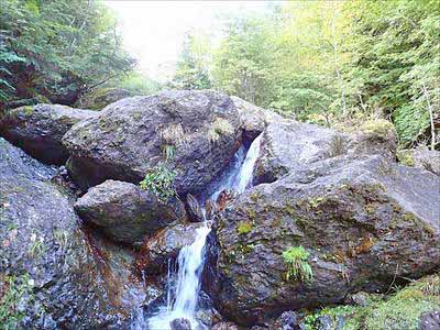 闇隅沢 2我が家から比較的近い「闇隅沢」。実はここ、2ヶ月前にも訪れた場所。その時の経験を活かして、今回は「ある作戦」を立てていました。それは、標高1,000mの分岐点(二俣)を左俣へ進むショートカットルート。これなら、あの長く辛いヤブ漕ぎを大幅に減らして、お昼までには家に帰れるはず!林道を歩くこと30分で入渓地点に到着!2025年9月23日撮影 |