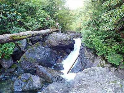 闇隅沢 27その標高1000mの二俣の右俣(本流)に掛かる「三ツ折れの滝10m」です。2025年9月23日撮影 |