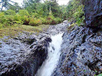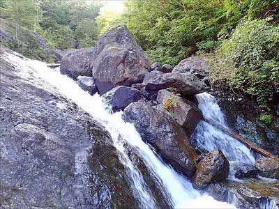 闇隅沢 26標高1000mの二俣で両俣に掛かるナメ滝。本流は右俣になります。2025年9月23日撮影 |