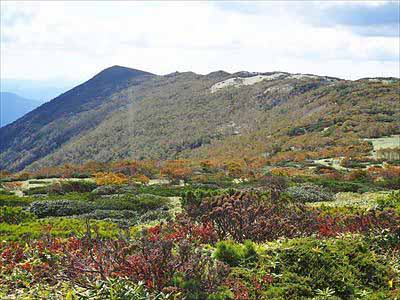 五葉山 大沢 24紅葉が始まっていました。日枝神社より黒岩を望みます。2025年9月27日撮影 |