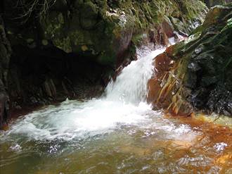 岩手山 焼切沢・中流部 14この沢の特徴は、沢床の岩が赤いのですよ。 おそらく温泉成分の影響なのかなぁ~? 南アルプスの赤石沢の赤い岩、 ラジオラリアを思い出します。2015年7月12日撮影 |