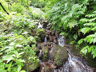 | <2017年8月4日(日)> 行動時間 7時間 (休憩時間含む) 登り(遡行):3時間 50分 / 下り:3時間 10分 善知鳥登山口P(6時50分)~水沢入渓(7時)~標高310m厄介な小滝(7時30分)~ 標高400mの15m滝(8時10分)~440m二俣(8時25分)~標高700m(9時50分)~登山道(10時30分)~ 女神山(11時)~兎平(11時55分)~松坂(12時45分)~善知鳥登山口(13時40分) |