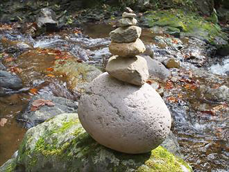 信倉沢~後ろのツル道 24その降る滝にあった可愛いケルン。2017年10月15日撮影 |