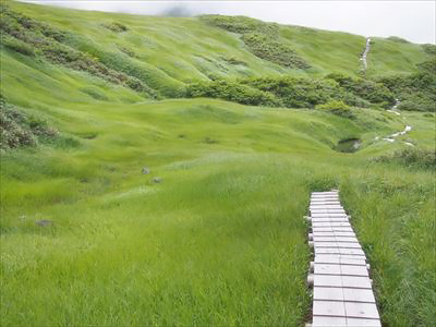 鳥海山 檜ノ沢 45二ノ滝コースの最大の見せ場である千畳ヶ原♪どこまでも続く広大な草原が気持ちいいです。2018年8月18日撮影 |