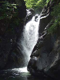 鶏頭山・御山川本流 ツボケ沢 8上の写真の大滝は、大きな釜を持っていて エメラルドグリーンの水の色が とっても綺麗でした♪2008年6月8日撮影 |