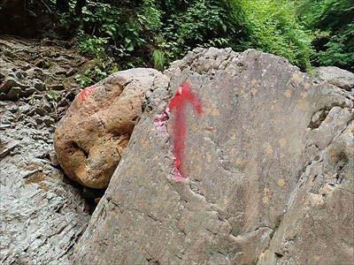 丹生川 道元峡~層雲峡 26落合までのルートを道元峡といい、落合から御宝前大滝までを層雲峡と言うそうです。道元峡の場合、増水時など林道に上がるエスケープルートが途中三か所あります。連絡道 2と3と4(落合)です。層雲峡は、エスケープルートがありません。2021年8月5日撮影 |