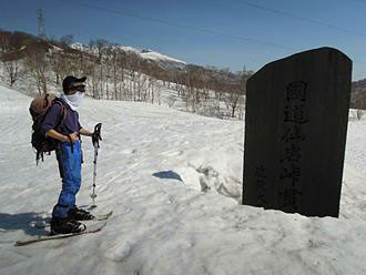貝吹岳~笹森山~国見温泉 22歩き始めて3時間、9時にヒヤ潟に到着! ここには「国道仙岩峠貫通記念碑」が ありました。旧秋田街道R46です。昭和39年から仙岩トンネルが完成する 昭和51年までこの道が使われていたようで、 別名「南八幡平パークライン」と呼ばれてました。 2012年4月15日撮影 |