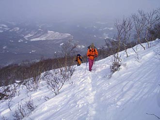 姫神山 19楽しそうに下るKさんです。2006年2月5日撮影(写真提供えるさん) |