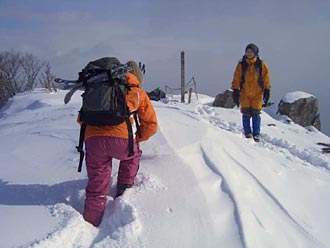 姫神山 14山頂が見えましたぁ~! 頑張るKさん、そしてそれを山頂で見守る えるさんです。「頑張れぇ~!」って。2006年2月5日撮影 |