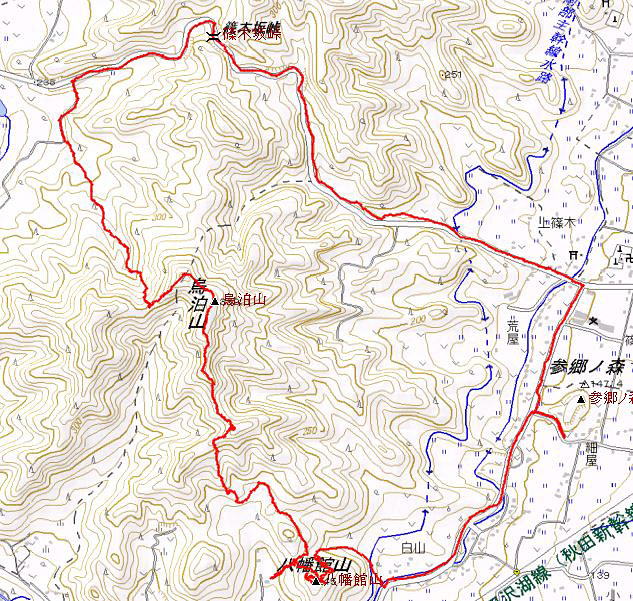 | <2013年12月30日(月)> 行動時間 2時間 40分(休憩時間含む) 八幡館山登山口(8時20分)~八幡館山(8時30分)~330m電波塔(9時20分)~烏泊山(9時35分)~ 車道(10時)~篠木坂峠(10時15分)~八幡館山登山口(11時) |