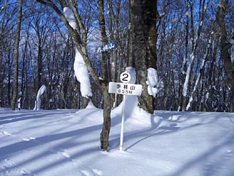 赤林山 14ふぅ~!山頂に到着で~す♪ 尾根の取り付きにあった一番の次の看板が なんと山頂でした。しかも二番ですよ…。 せめて途中にも数箇所欲しいところですよね!2006年1月7日撮影 |