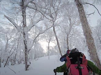 桐ノ木沢山 9霧氷地帯に突入です。 この山で一番綺麗な場所です。 お天気はいまいちでしたが、幻想的で とても綺麗でしたよ♪2015年1月18日撮影 |