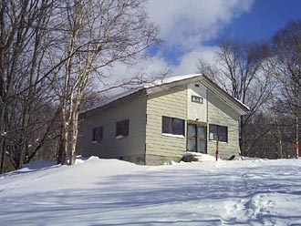 兜明神岳 8少年自然の家から歩くこと 約1時間ほどで、この山小屋 「兜山荘」に到着しました。2006年2月12日撮影 |