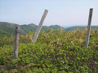 真昼岳 6秋田県仙北郡美郷町と岩手県和賀郡 西和賀町との県境にあるこの山名の由来は、 坂上田村麻呂が東征の折、「昼頃に山頂に 着いたから」とされているようです。2016年5月20日撮影 |