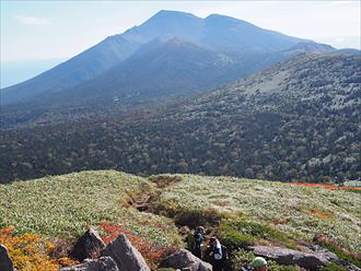 八幡平 三ツ石山 15乳頭山を望む(写真右上に見えます)。2016年10月1日撮影 |