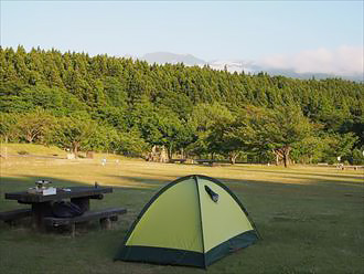 鳥海山 (鉾立) 44このキャンプ場から鳥海山を眺めながら 一人打ち上げ!祝杯を上げました。2017年6月17日撮影 |