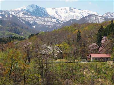 大薊山 49その展望の丘公園より栗駒山の雄姿を望みます。新緑がとても綺麗でした。2019年4月29日撮影 |