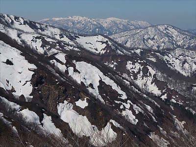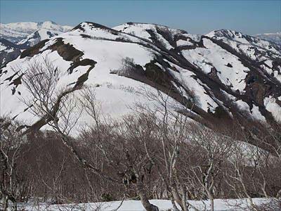 桑原岳 27その急斜面から焼石岳、天竺山、経塚山、駒ケ岳を望みます。2019年5月4日撮影 |