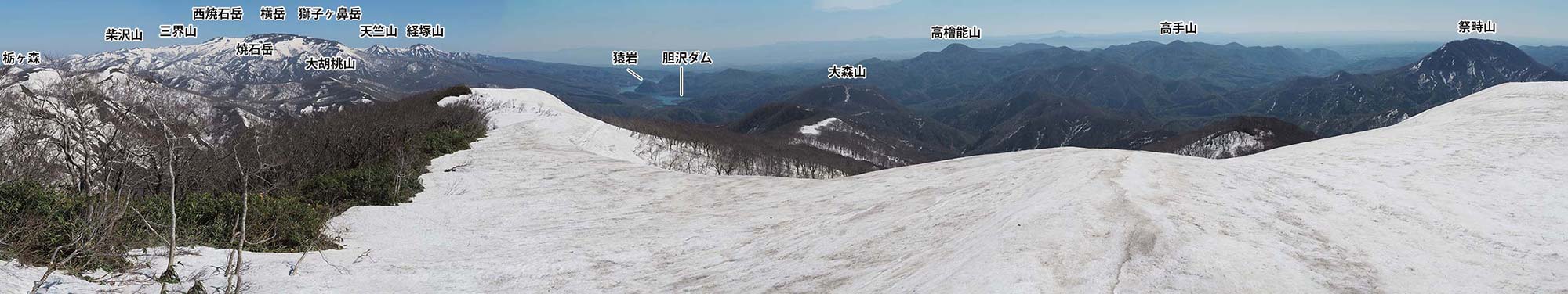桑原岳 36北方向に目を向けると焼石連峰の山々が一望できます。2019年5月4日撮影 |