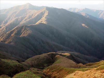 神室山・役内コース周回 38神室山の山頂より天狗森~小又山~火打岳を望みます。北上山岳会さんは、こちらのルートを縦走されるようです。来春、ぜひこのロングコースを残雪期に縦走したいです。2019年11月4日撮影 |