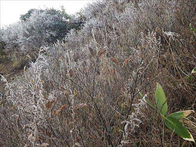 神室山・役内コース周回 39朝はかなり冷えて霜が降りていました。稜線上は風も強くフリースと雨具を着込み完全防備で歩きました。山は、もう直ぐ冬です。2019年11月4日撮影 |