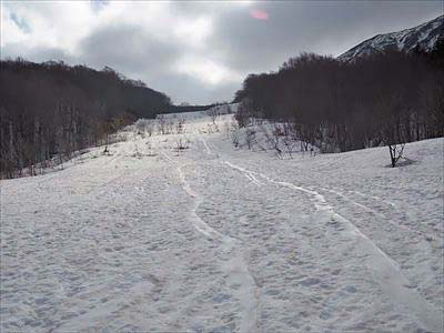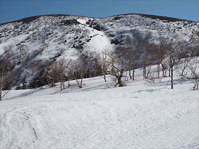 秋田駒ケ岳 5アルパこまくさより旧スキー場を登っていきます。今の時期であれば、いつもは、田沢湖スキー場から登ることが多いのですが、今回は初めてメジャーな人気ルート「アルパこまくさ」より登ってみることにしました。2021年4月1日 |