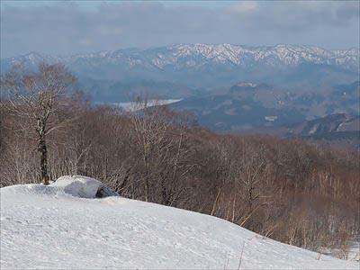 秋田駒ケ岳 42下山中、1,450mにて。乳頭山が見えます。2021年4月1日 |