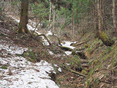 方丈山 18沢沿いにどんどん下っていきます。何度も沢に入る羽目になりましたので、長靴がベストです。2021年4月3日 |