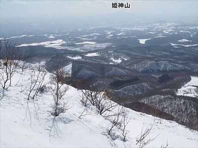 七時雨山 27左から中岳(1,024m)~白地山(1,034m)、右端に稲庭岳(1,078m)を望みます。過去、自分が登った山が見えると感慨深いものがあります。2022年3月12日 |