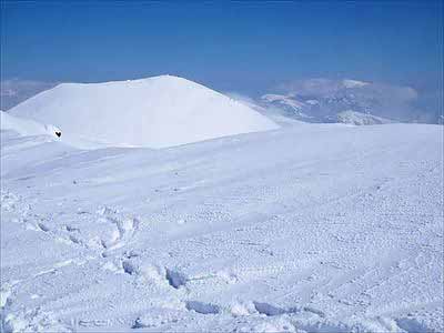 秋田駒ケ岳(男岳) 12男岳の山頂を望みます。2024年3月24日撮影 |